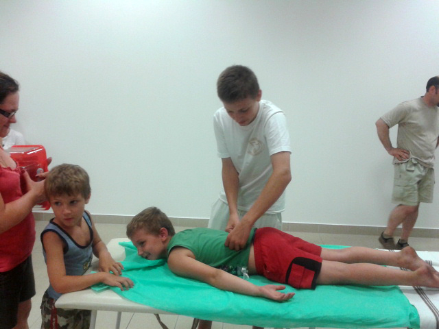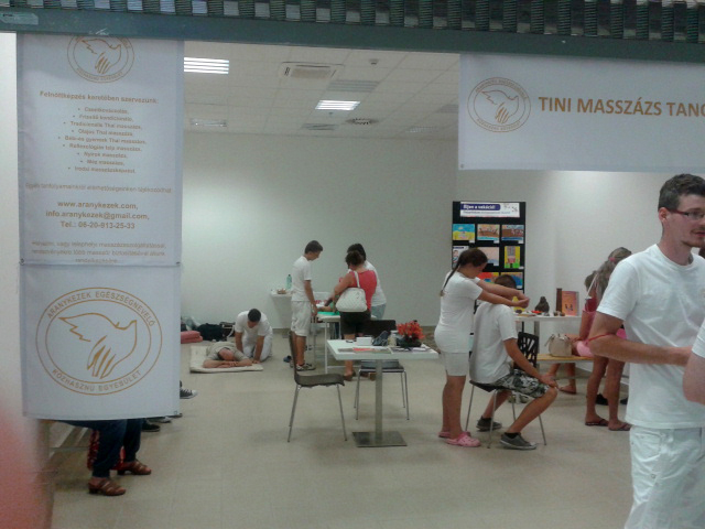 Július 19-én, 13 fővel, a Tini Masszőr Tanulóink és felnőtt képzésben részt vett masszőrjeink bemutatkoztak a reptéri extra Tesco standján. 4 órán keresztül a vásárlók kedvére vérnyomás mérést, irodai masszázst, csontkovácsolást, Tradicionális Thai masszást és talp masszázst kaphattak az érdeklődők. Szerencsére sokan éltek a lehetőséggel, kíváncsian fogadták a legkisebbek által nyújtott masszázst is.